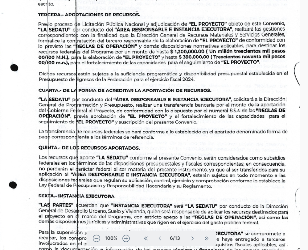 SEDATU, por su parte, falló en su deber de supervisión. El convenio firmado entre esta dependencia federal y el ayuntamiento el 4 de marzo de 2024, establecía que debía garantizar el cumplimiento legal, técnico y social del proyecto, pero en la práctica SEDATU se limitó a presionar al gobierno municipal para que el documento se entregara rápido y se validara sin cambios sustantivos.